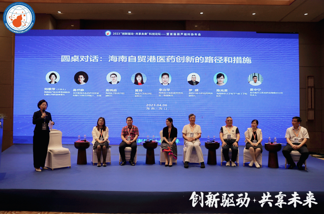 四川省中医药管理局原副局长罗建、海南省市场监督管理局原一级巡视员李治平、海南大学药学院副院长黄玲、海南医学院药学院副院长高炳淼、海南师范大学化学与化工学院院长陈光英、北京鑫开元医药科技有限公司海南分公司负责人夏中宁、北京新领先医药科技发展有限公司总裁、杭州康领先医药科技有限公司总经理高世静等,在主题为“海南自贸港医药创新的路径和措施”的圆桌论坛中积极献策。万博药业集团董事长、万博药业科协主席刘景萍主持论坛。
