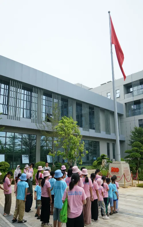 紧接着,孩子们来到了建党百年庆典红旗——070号红旗前。讲解员讲述了万博药业集团与庆典红旗的深厚渊源。孩子们听得津津有味,眼中闪烁着对党和国家的热爱与敬仰。